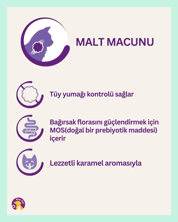 Beaphar Malt Paste, kedilerde tüy yumaklarının atılmasını kolaylaştıran ve bağırsak sağlığını destekleyen mineral içerikli özel bir macundur. İçeriğindeki doğal BİO-MOS, sindirimi kolaylaştırır, bağışıklık sistemini güçlendirir ve zararlı bağırsak bakterilerinin oluşumunu önler.