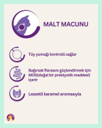 Bu malt macun, tüylerin bağırsaklarda birikmesini engelleyerek kedinizin sağlıklı ve rahat sindirimini destekler. Tüyler ince bir tabaka ile sarılarak bağırsaklardan kolayca geçer ve dışkı ile atılır.