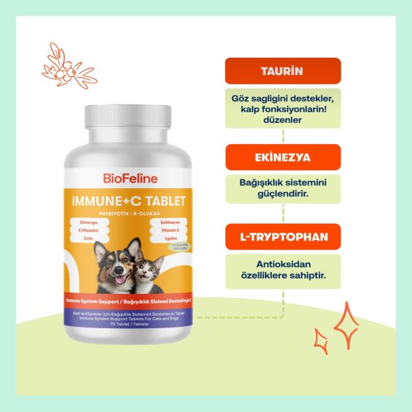 Evcil dostunuzun sağlıklı ve güçlü kalması için Biofeline Immune+C vitamin takviyesi ideal bir seçimdir.