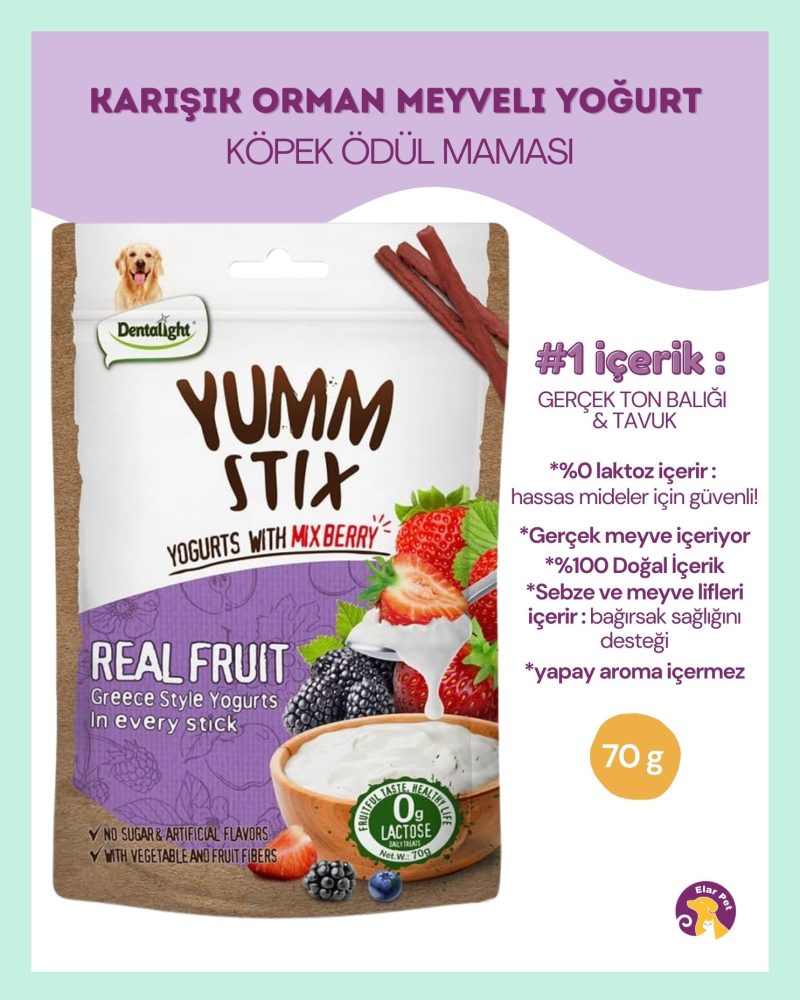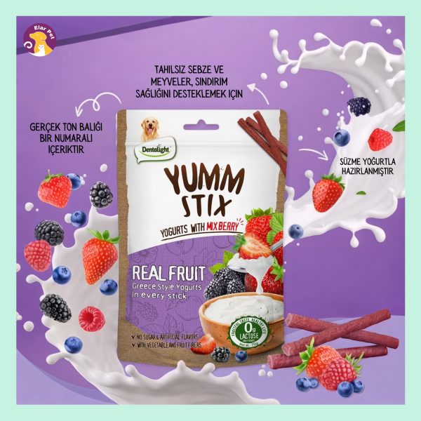 Dentalight Yumm Stix Yoğurtlu Karışık Orman Meyveli Köpek Ödülü – Ton Balıklı, Tahılsız (70g)