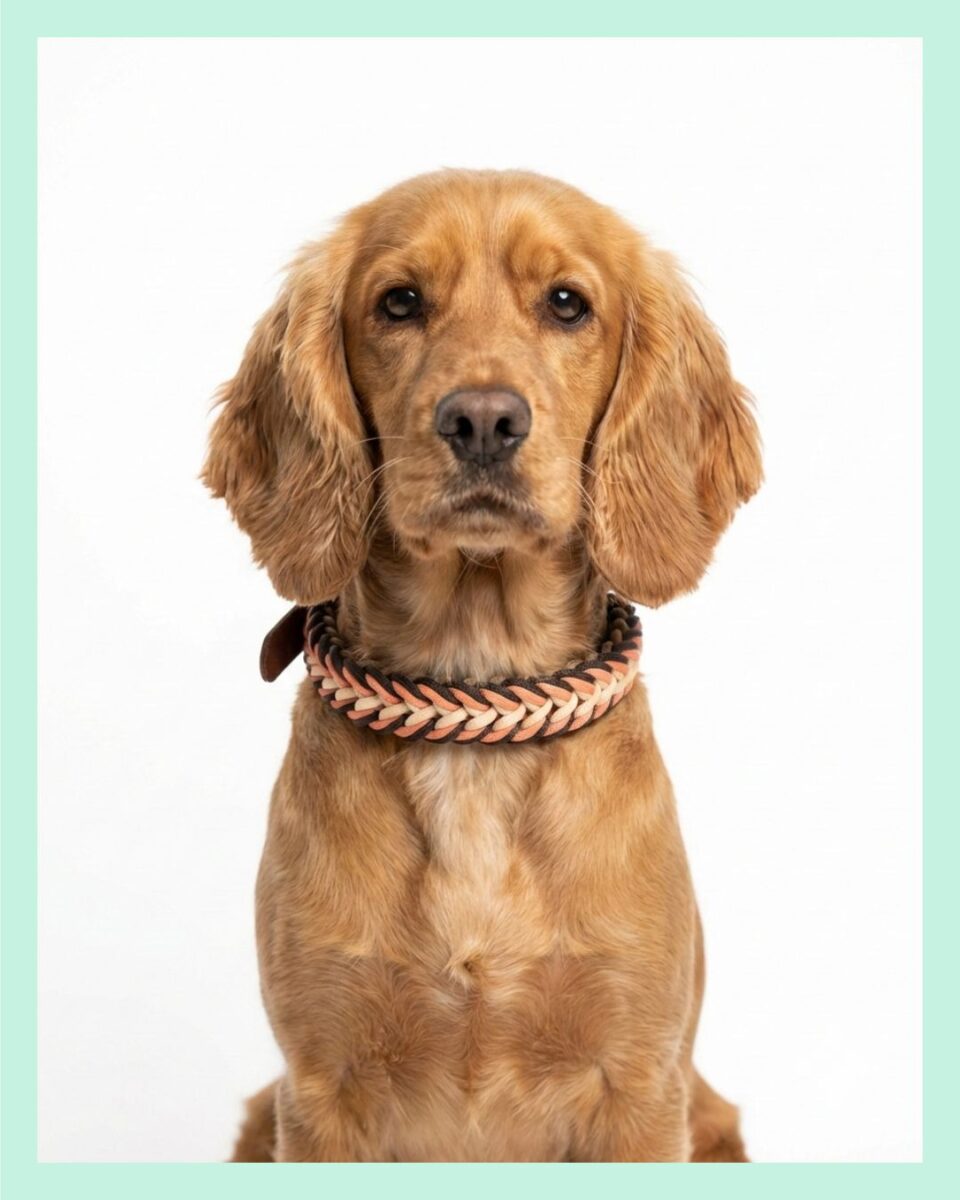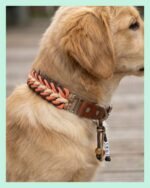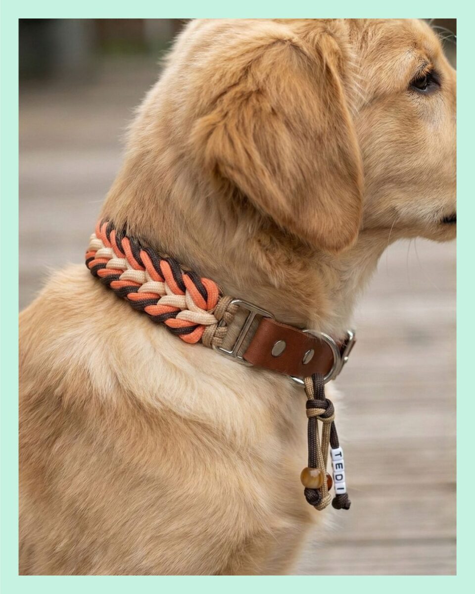 El Yapımı Paracord ve Deri Köpek Boyun Tasması – Örgü Strong 06 | Krem, Kahverengi & Somon