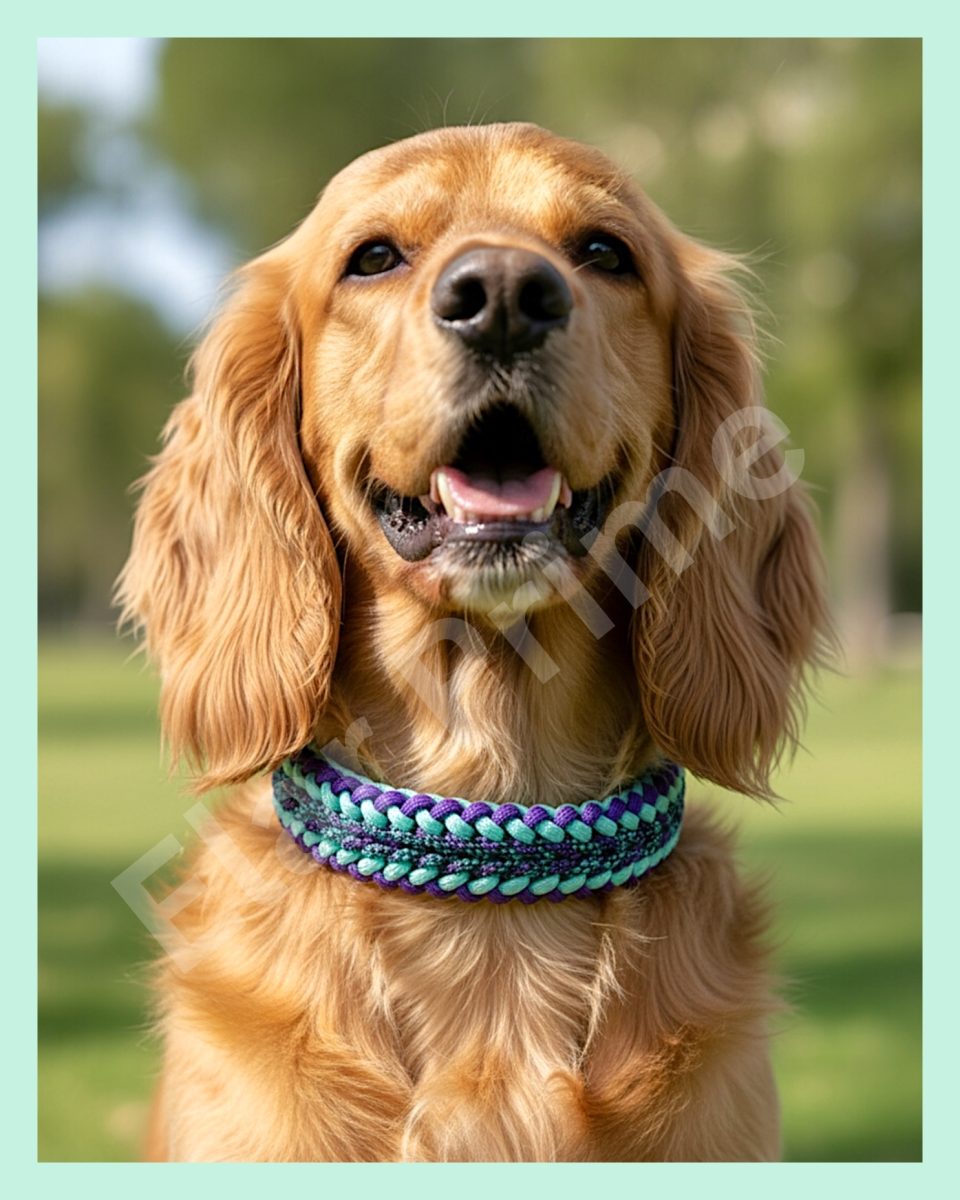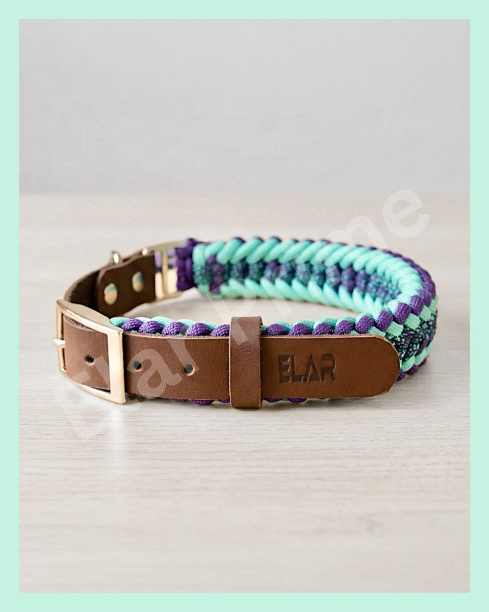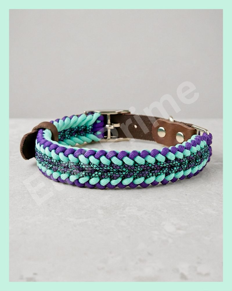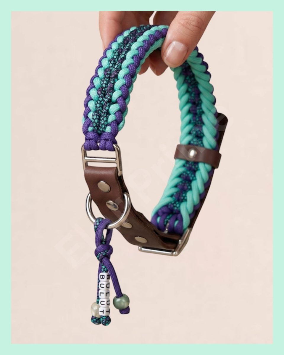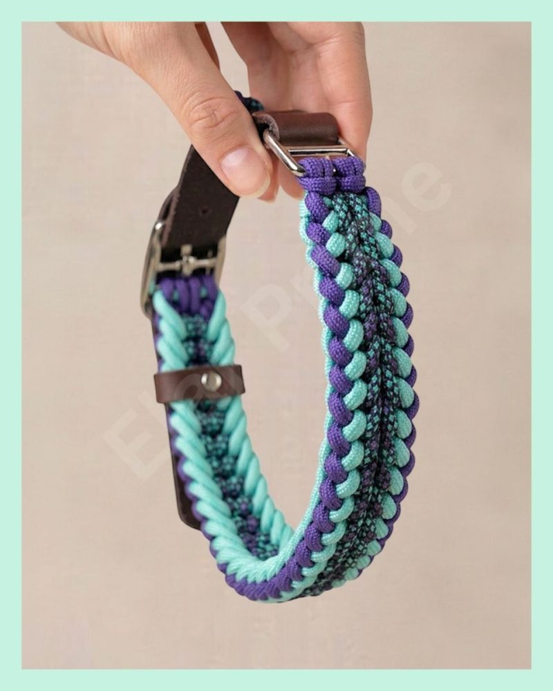 El Yapımı Deri ve Paracord Köpek Boyun Tasması – Örgü Strong 08 | Turkuaz & Mor
