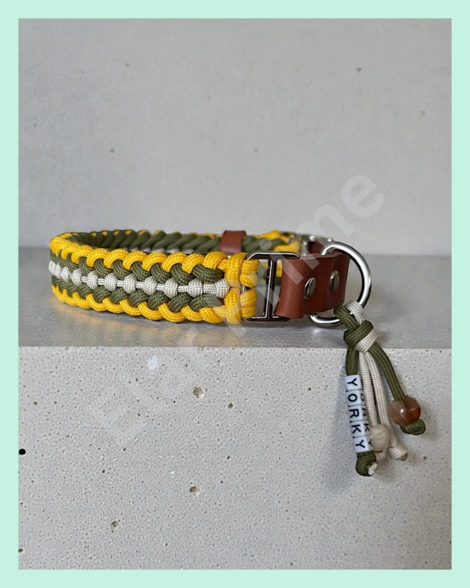 El Yapımı Deri ve Paracord Köpek Boyun Tasması – Örgü Strong 09 | Yeşil & Sarı