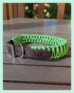 El Yapımı Paracord ve Deri Köpek Boyun Tasması – Örgü Urban 03 | Fosforlu Yeşil & Kahverengi Deri