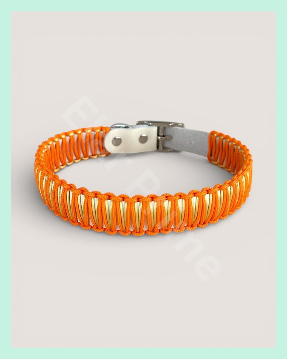 El Yapımı Paracord & Deri Köpek Boyun Tasması – Örgü Urban 11 | Krem & Turuncu