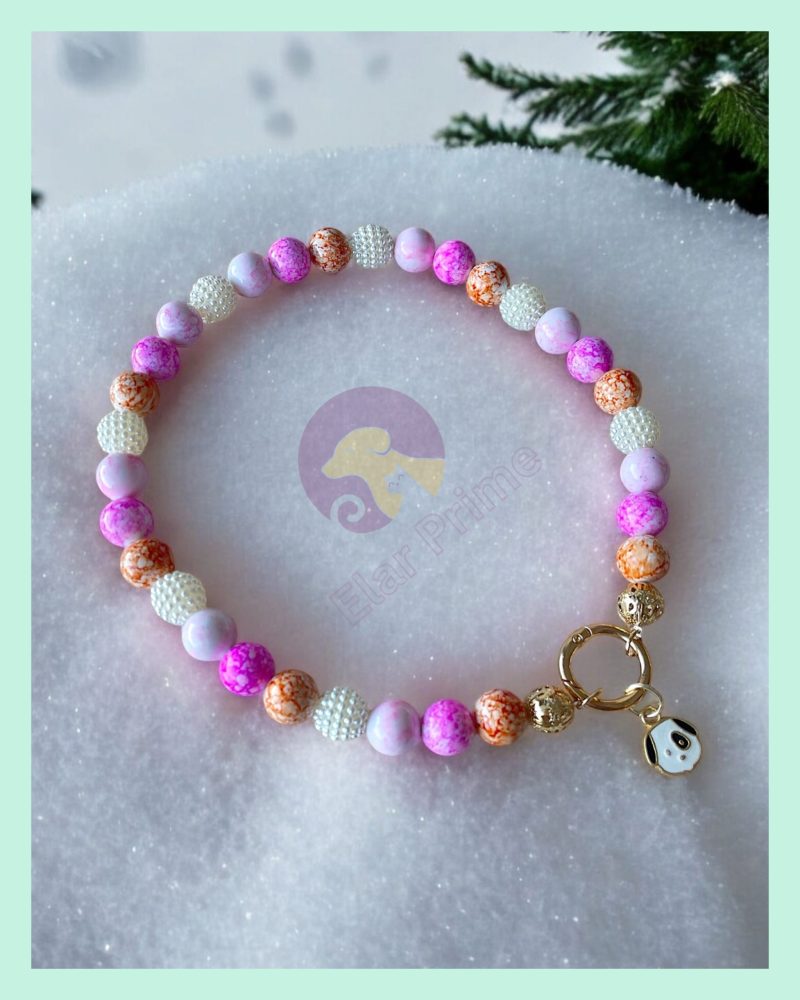 Pembe Boncuklu El Yapımı Köpek Tasması – Charm Detaylı Şık Köpek Tasması