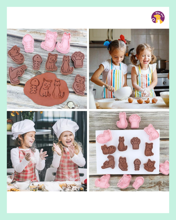 Elar Aksesuar 8 Adet Kedi Kurabiye Kalıbı Seti – 3D Damga ve Paslanmaz Çelik Bisküvi Kesici