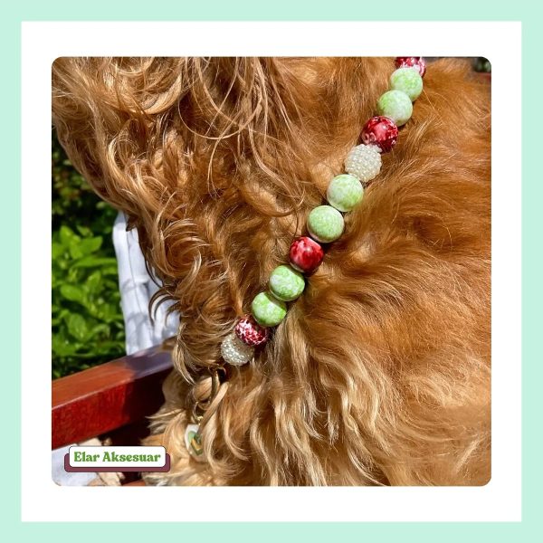 Elar Aksesuar Minty Love Boncuklu Tasma, nane yeşili, inci beyazı ve kırmızı detaylarla süslenmiş şık ve el yapımı bir tasma modelidir. Küçük ırk köpekler ve kediler için uygun olan bu özel aksesuar, hafif yapısı ve kaliteli boncuklarıyla evcil dostunuza zarif bir görünüm kazandırır. Hem stil hem konfor bir arada!