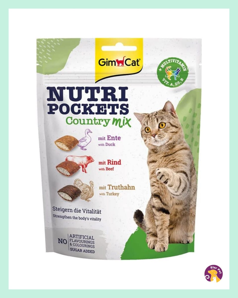 Gimcat Nutri Pockets Country Mix, ördek, sığır eti ve hindi dolgulu çıtır yastık formuyla kediler için hem lezzetli hem de fonksiyonel bir kedi ödül mamasıdır. Gevrek dış kaplaması ve yumuşak iç dolgusu sayesinde kedinizin ilgisini anında çeker ve keyifle tüketilir.