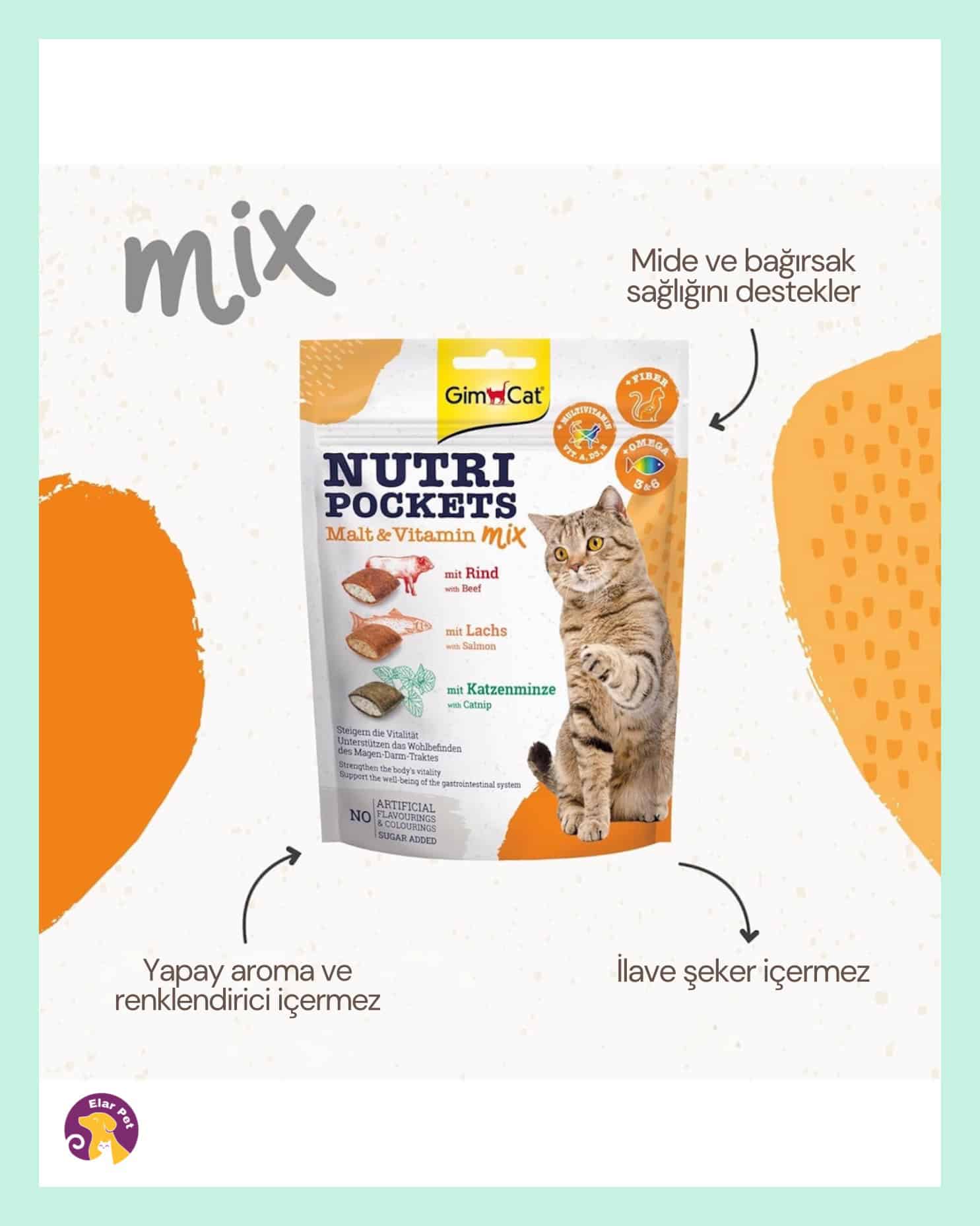 Gimcat Nutri Pockets Malt & Multivitamin Mix Kedi Ödülü(150g)