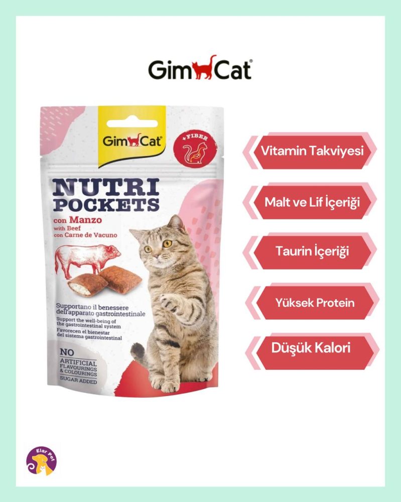 Gimcat NutriPockets sadece bir ödül değil, aynı zamanda sağlıklı sindirim sistemi için yardımcı bir besin desteğidir. Kedi ödülü, biftek aromalı kedi ödülü, malt içerikli kedi ödülü, tüy yumağına karşı kedi ödülü gibi aramalar için ideal bir tercihtir.