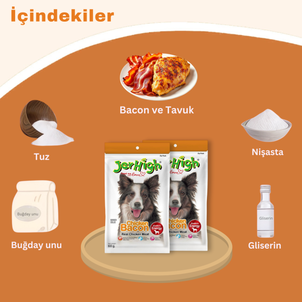 Jerhigh Bacon ve Gerçek Tavuk Eti Köpek Ödül Maması – Lezzetli ve Besleyici 60 g