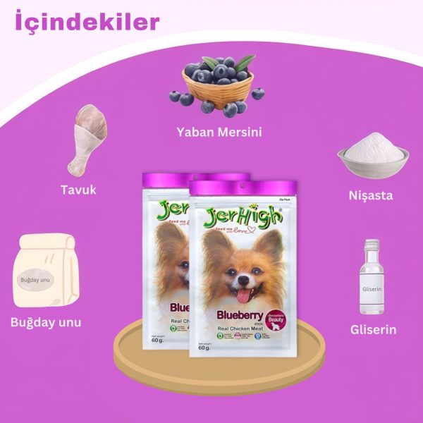 Yaban mersini, doğal antioksidanlar bakımından zengindir ve köpeklerin genel sağlığını desteklemeye yardımcı olur. Bu özel formülasyon, gerçek tavuk etiyle birleşerek köpeğinizin hem sağlıklı hem de lezzetli bir ödül deneyimi yaşamasını sağlar. Jerhigh Blueberry Stick, köpeğinizin bağışıklık sistemini güçlendirirken, deri ve tüy sağlığını da destekler.