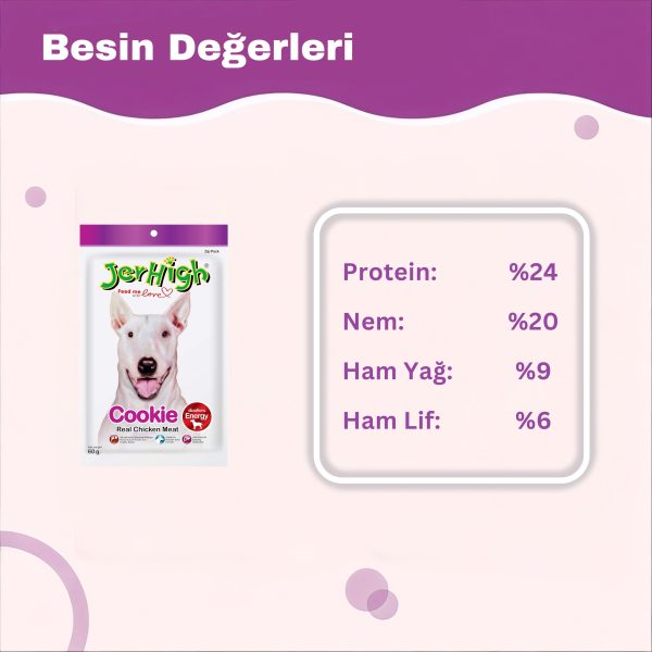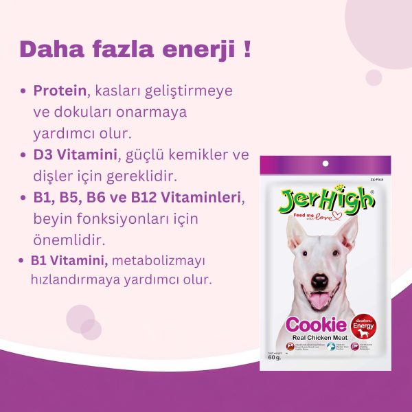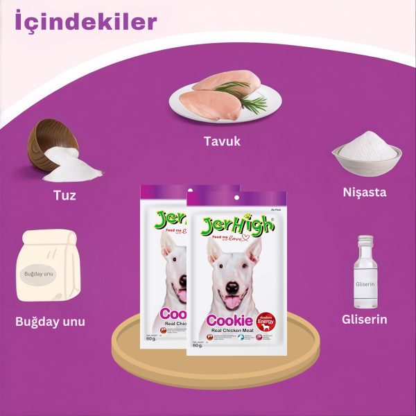 Jerhigh Kurabiye (Cookie) Gerçek Tavuk Etiyle Lezzetli ve Besleyici Köpek Kurabiyesi Ödülü (60 g)