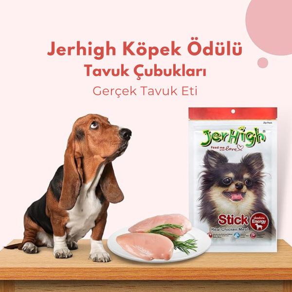Jerhigh Tavuk Çubukları Gerçek Tavuk Etiyle Lezzetli ve Sağlıklı Köpek Ödül Maması (60 g)