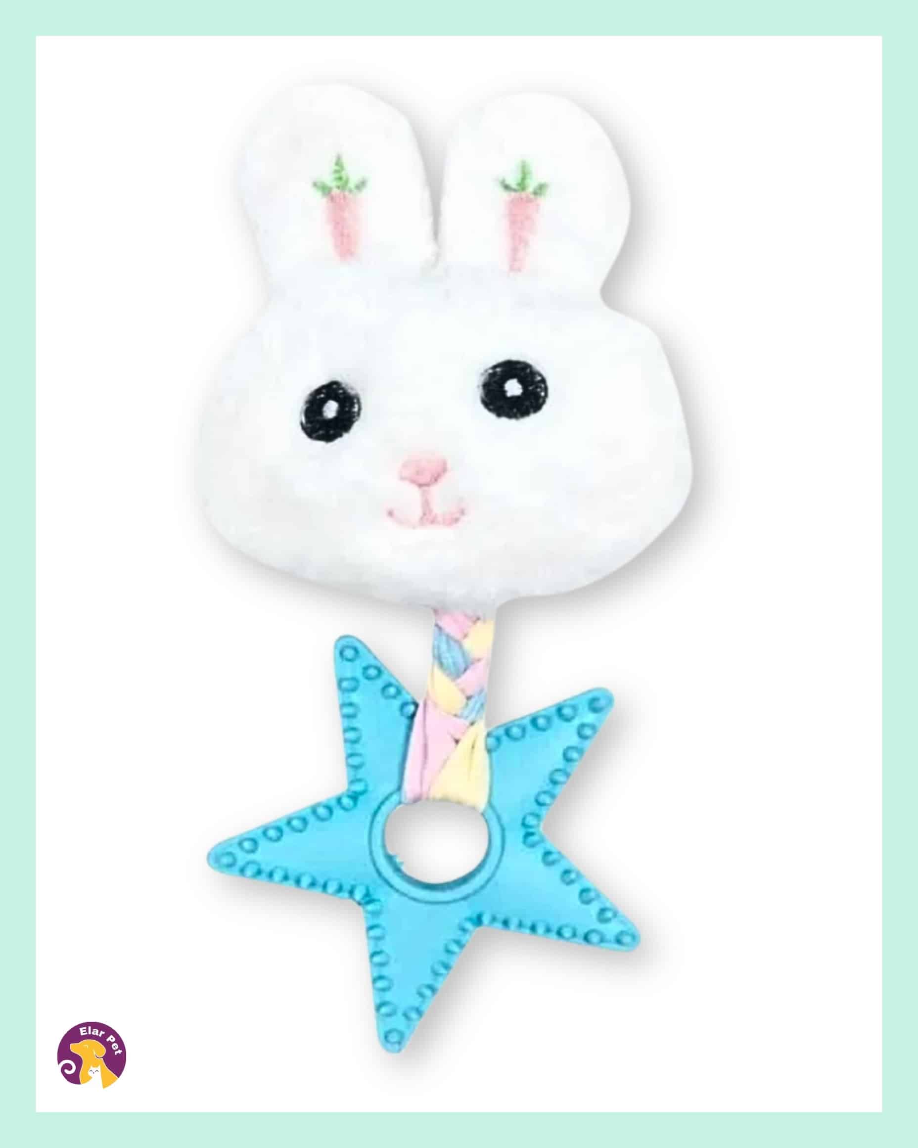 Kedi ve Köpekler İçin Yıldızlı Tavşan Dişlik | Peluş Çiğneme Oyuncağı