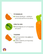 Havuç şeklindeki bu sesli köpek oyuncağı, hem diş ve diş etlerine iyi gelir hem de suyun üzerinde yüzer. Yumuşak köpük ve dayanıklı TPR (termoplastik kauçuk) karışımı malzemesi sayesinde hem güvenli hem uzun ömürlüdür.