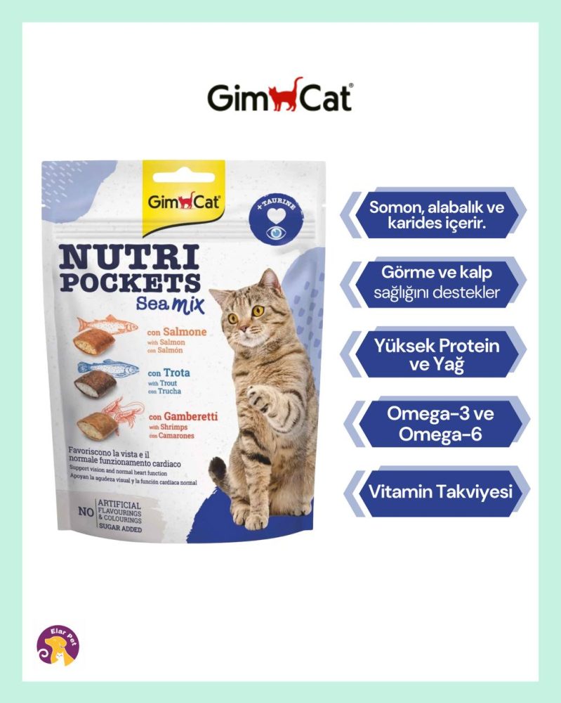 GimCat Nutri Pockets Sea Mix, kedinizin hem sağlıklı hem de mutlu kalmasını sağlayan lezzetli bir destekleyici mamasıdır. Hemen sipariş verin, kedinizin bu eşsiz lezzetle tanışmasına fırsat tanıyın!