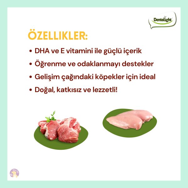 Dentalight Yumm Stix Tavuk ve Kuzu Etli Köpek Ödül Mamasi , Günde bir adet önerilen 6 aydan büyük köpekler için uygun, lezzetli ve besleyici bir ödüldür.